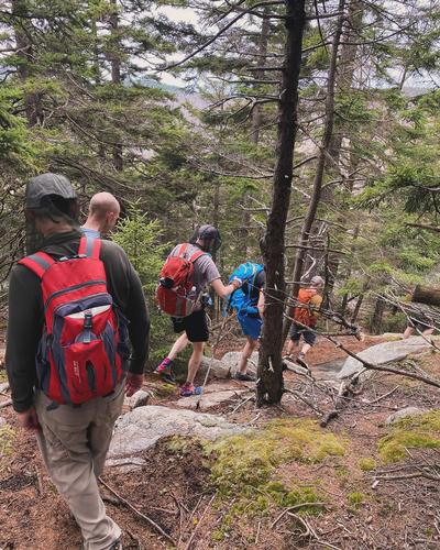 What a great day in the Belknaps! Nine of us met for a beautiful traverse from Mt. Major to Gunstock Mountain. Our list of peaks for the day included Major, North Straightback, East Quarry, West Quarry, Rand, Belknap, Gunstock, and the unforgettable, unparalleled, and utterly formidable Mt. Klem. The trails were surprisingly dry for it being mid-spring, and the views throughout the hike were wonderful. Some highlights of the day include beautiful (if not a bit cloudy) views of Alton Bay and Lake Winnipesaukee, getting “bugged” at lunch, climbing the Belknap Fire Tower, and JT making friends with a porcupine on Gunstock Mountain (well, it was a one-way friendship). It was a great day of stories, jokes, and general camaraderie. Thank you so much to everyone who came out for this adventure!