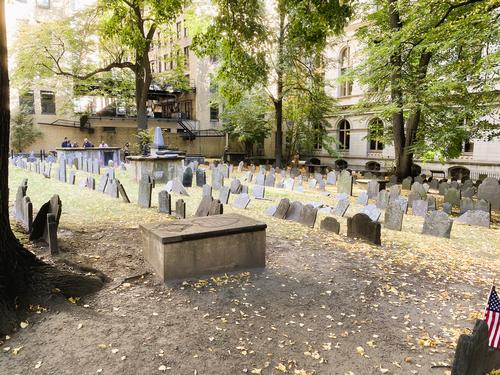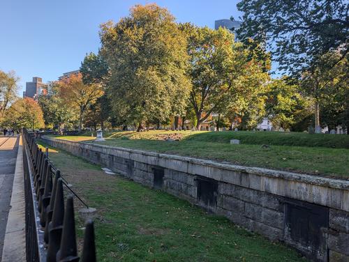 We will meet at the entrance to the historic Central Burying Ground located near the corner of Boylston and Tremont Streets in downtown Boston. Although there's no street number for the graveyard, the entrance is opposite 120 Boylston St. (an Emerson College building). For those taking the T (MBTA), the entrance is just around the corner from Boylston T Station.