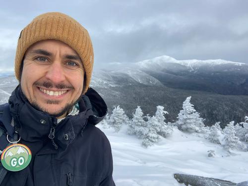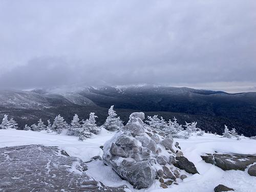 Either way, the trail is super pretty in the winter - snow dappled forest vistas via a curving ascent on the well-protected side of the mountain. We arrived around 10:30 to the summit of Mt. Jackson, which had a stunning 360-degree view of the whites, there got a few minutes with a clear view of Washington which was awesome. After a break we continued forward onto the Webster Cliff trail towards Mr. Pierce. No one had actually traversed the ridge trail so it was all snow.