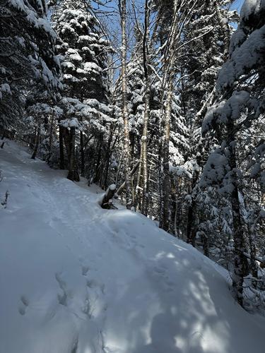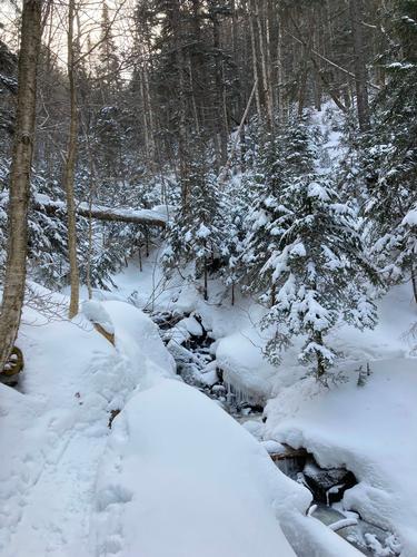 We had a wonderful winter hike with a snowy start and a clear end to our day. With ambient air temperature in the single digits at the warmest part of the day, thankfully the trail was mostly out of the wind other than summiting Willey. We could look across to the presidentials and see the 100mph winds whipping the last of the clouds across the summits of Washington, Madison, and Eisenhower. Good thing we didn't let the higher summits forecast scare us off because our hike was cold but quite manageable.